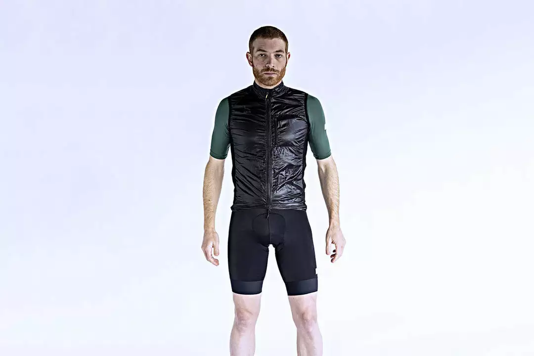 Highly packable, lightweight, windproof and water resistant cycling gilet.