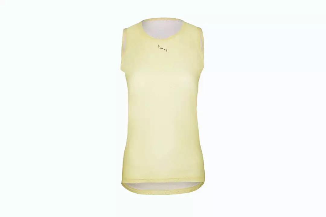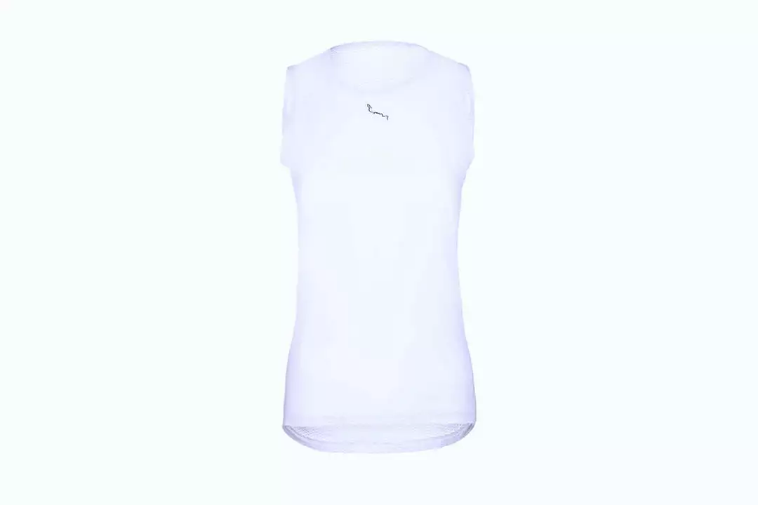 Sleeveless mesh base layer for effective core temperature regulation when riding in warm conditions. Breathable, stretchy, and soft on the skin, the mesh fabric wicks moisture away from the body, regulating temperature and keeping the wearer comfortable on long days in the saddle.
