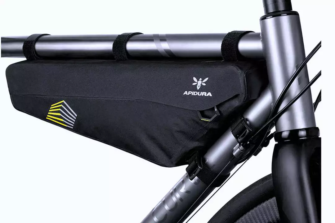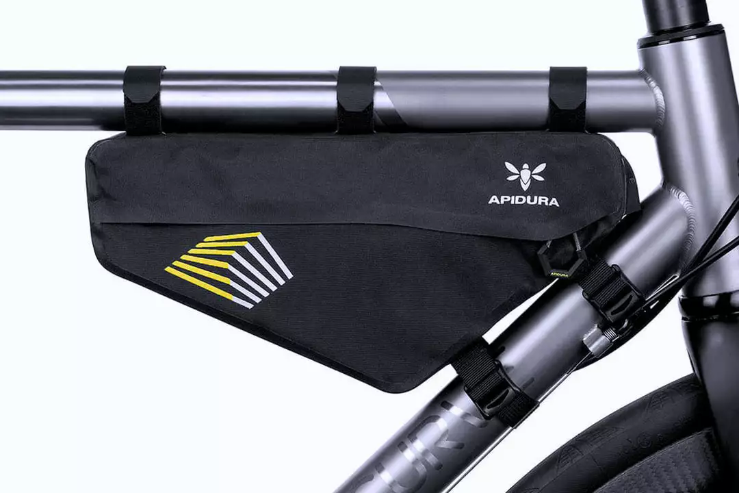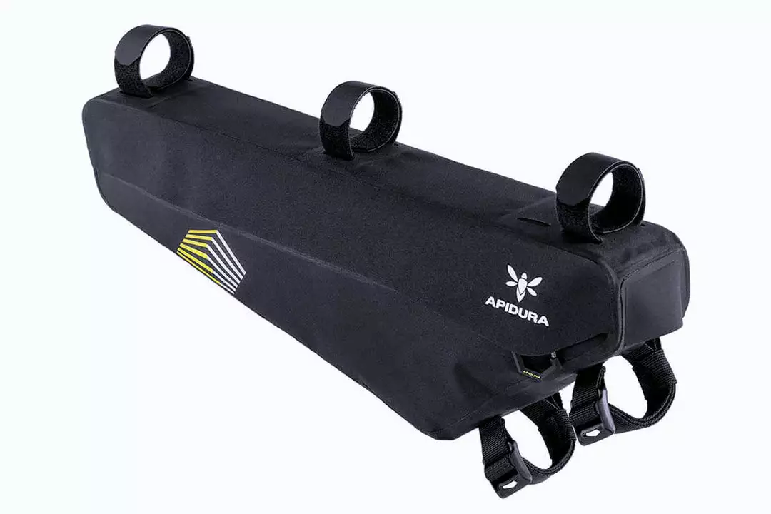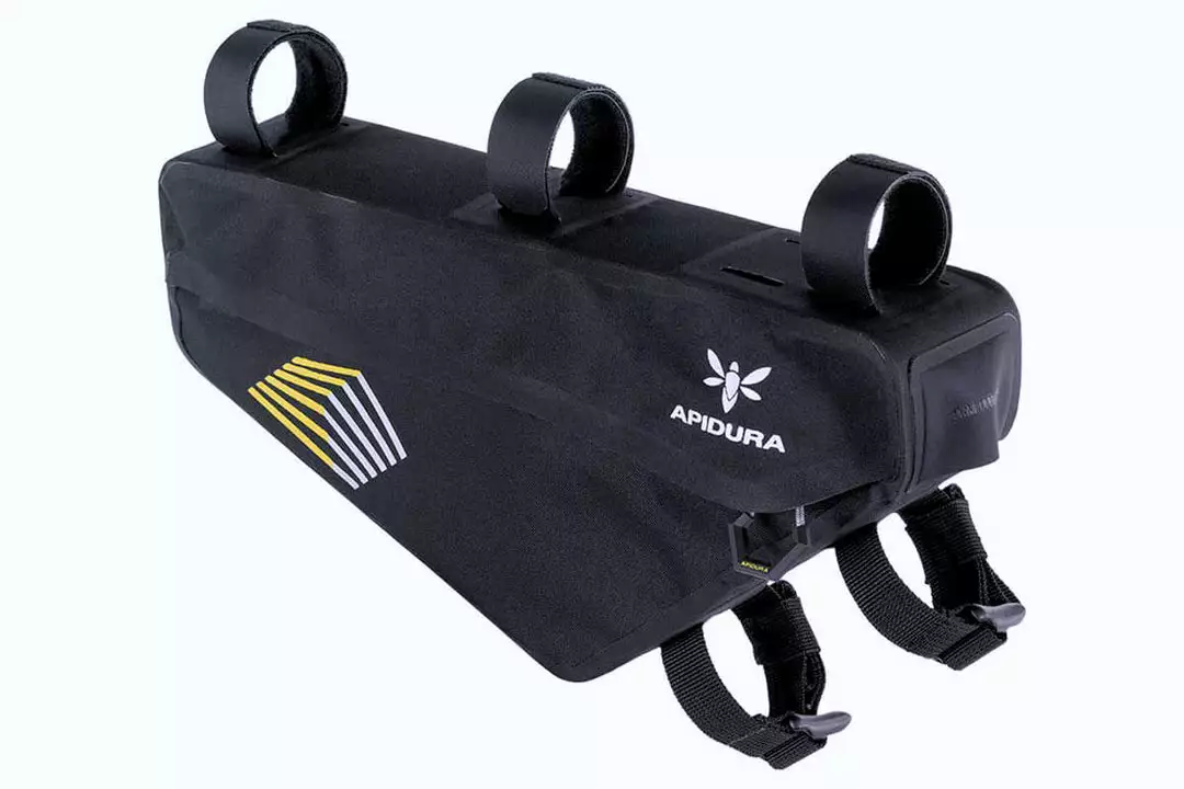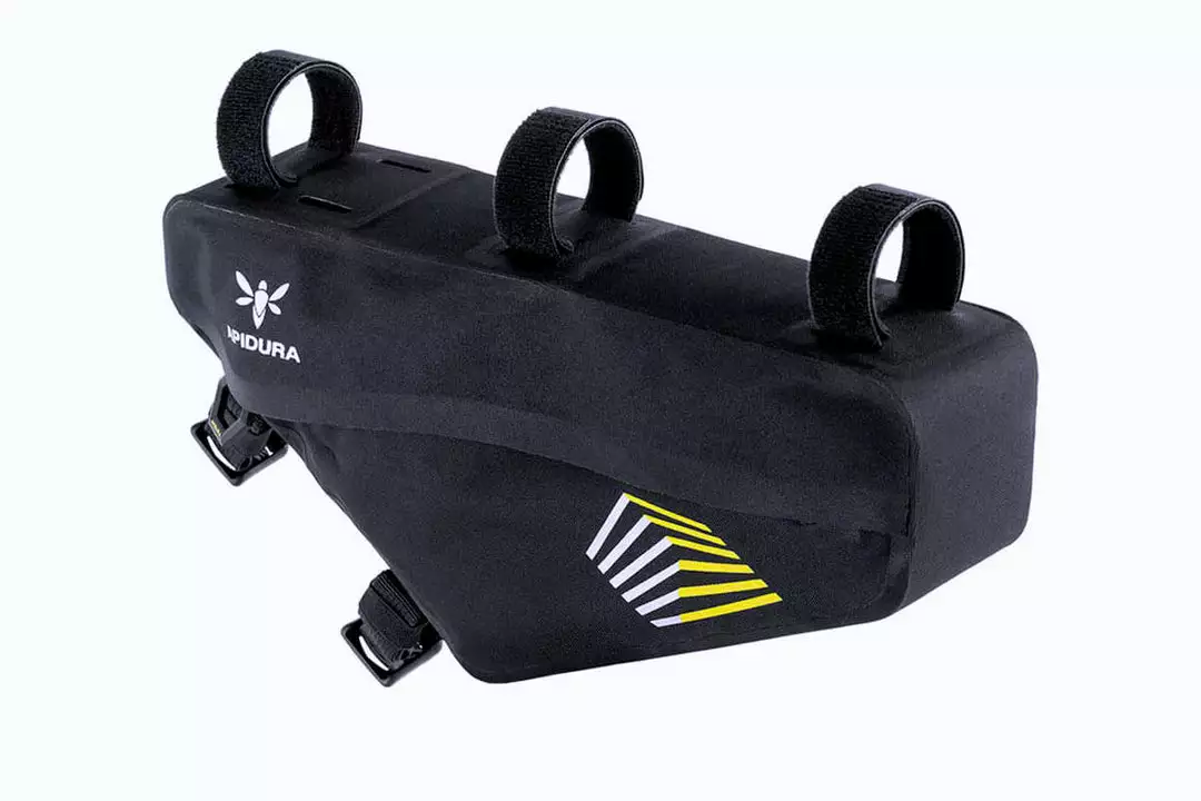 Apidura designed their racing frame pack with additional reflective highlights for more visibility and constructed the pack from a waterproof and lightweight laminate.