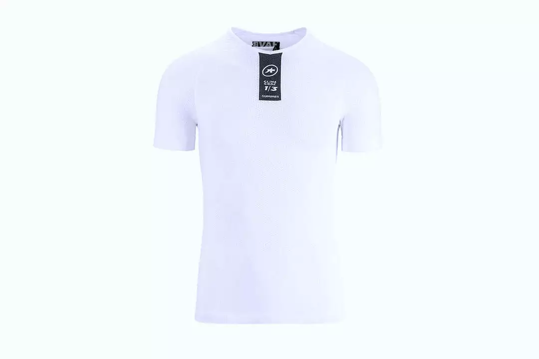 A short-sleeved ASSOS skinFoil base layer is the ultimate foundation for a summer bike ride. This breathable base layer benefits from a moisture-wicking transport mesh and new v-cut neck to increase airflow, while its short-sleeved design lends it elevated hot-weather riding credentials as well as the flexibility for slightly cooler summer days.
