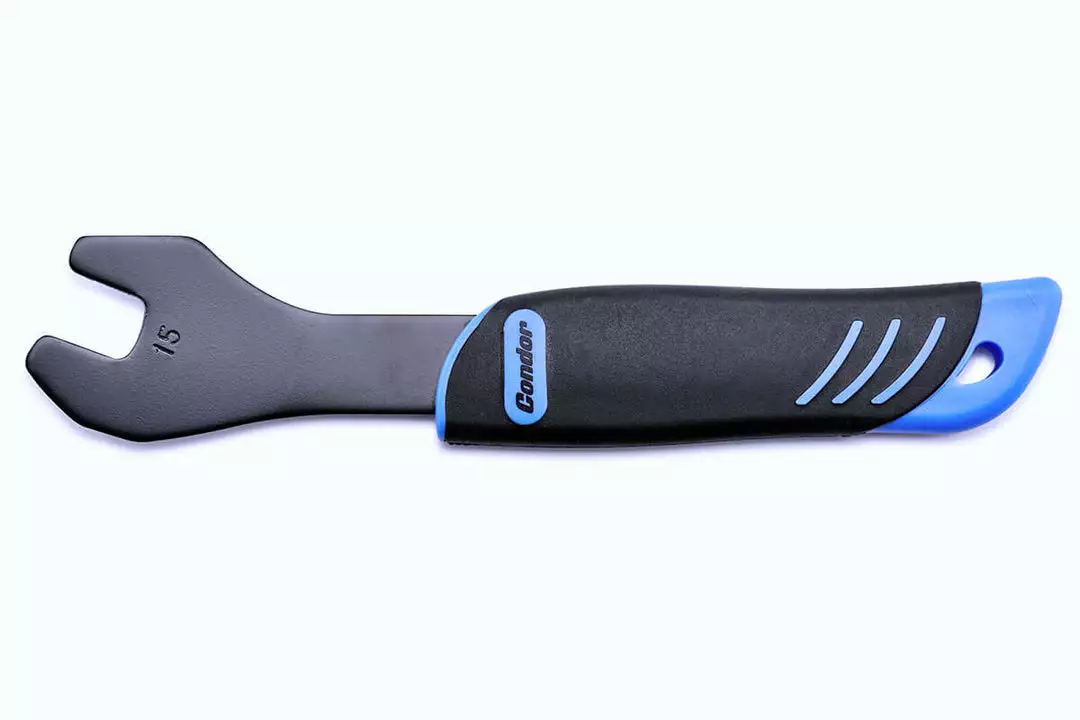 Perfect for quickly getting your pedals on and off your bike, our Condor Pedal Wrench with rubberize handle allows you to get a good grip and release stubborn pedals off the crank..