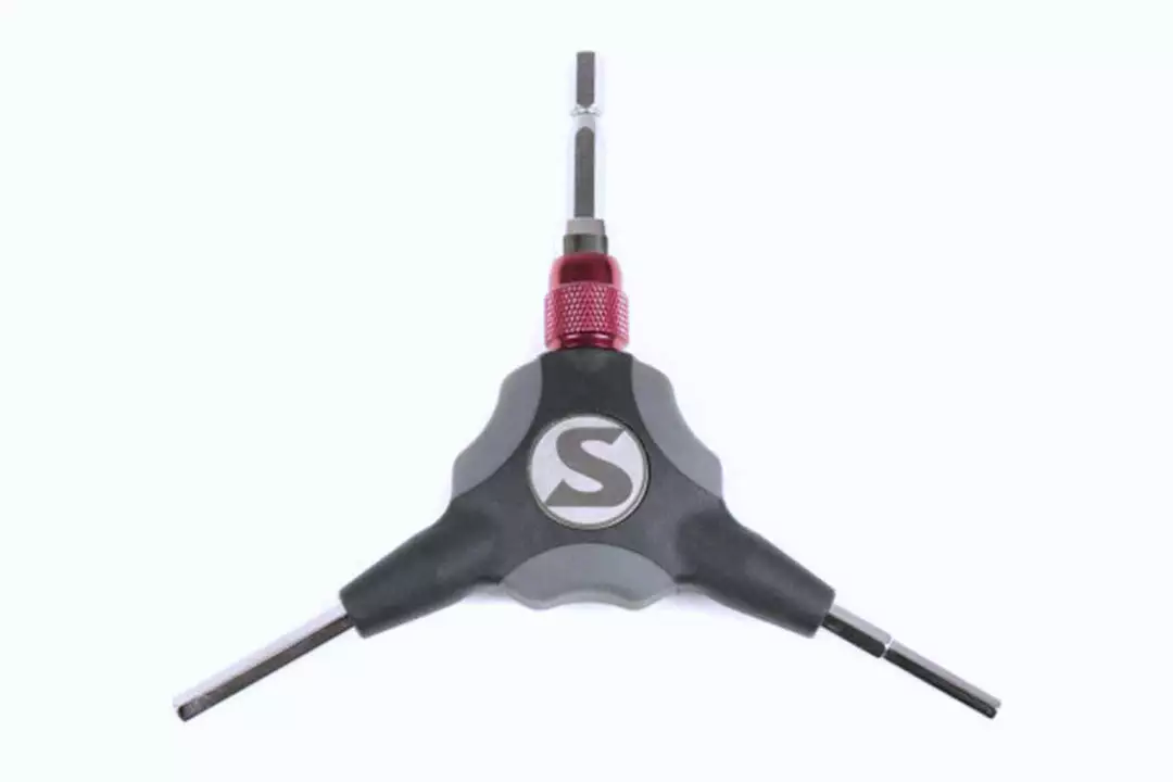 The Silca Ypsilon Y-Wrench is a professional-quality workshop Y-wrench equipped with a quarter-inch bit collet ready for your existing hex, Torx or screwdriver bits. It also includes a 6mm bit giving you 4, 5 and 6mm hex tools out the box.