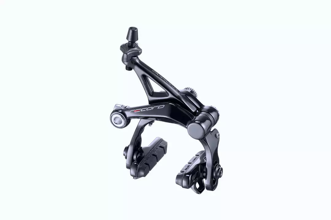 To meet this requirement, Campagnolo designed the Record brakes with the same braking performance of the Super Record, so that the braking response is consistently decisive and immediate. The braking power is entrusted to the stiffness of the new structure, which is sealed and offers a strong aerodynamic impact, along with the Campagnolo brake block compound developed by the Campy Tech Lab in Vicenza. If necessary, it is easy for either the mechanic or the race athlete to act on the cable tightener register.