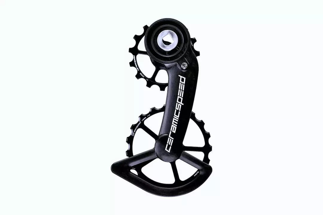 Custom designed molded carbon fiber cage with two spring tension settings to allow customised setup based on ride conditions.