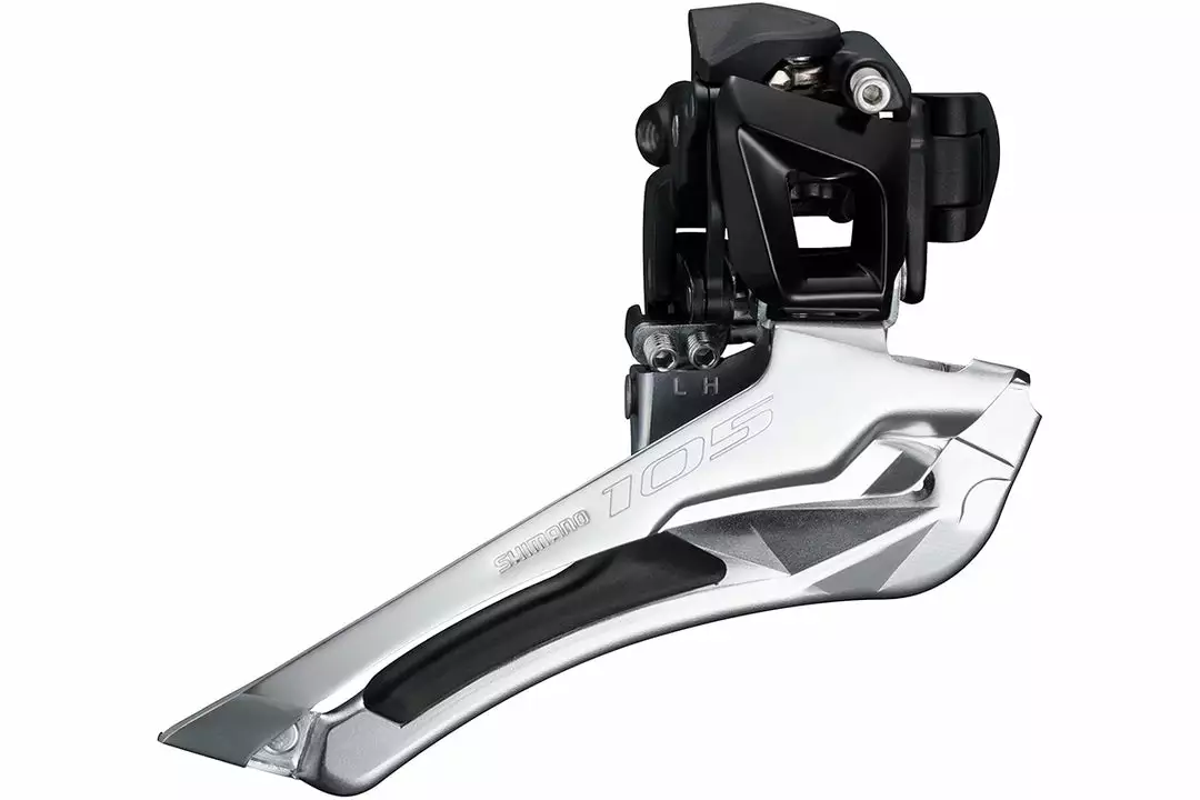 Wide link design 105 double front derailleur for increased rigidity and improved shifting response.