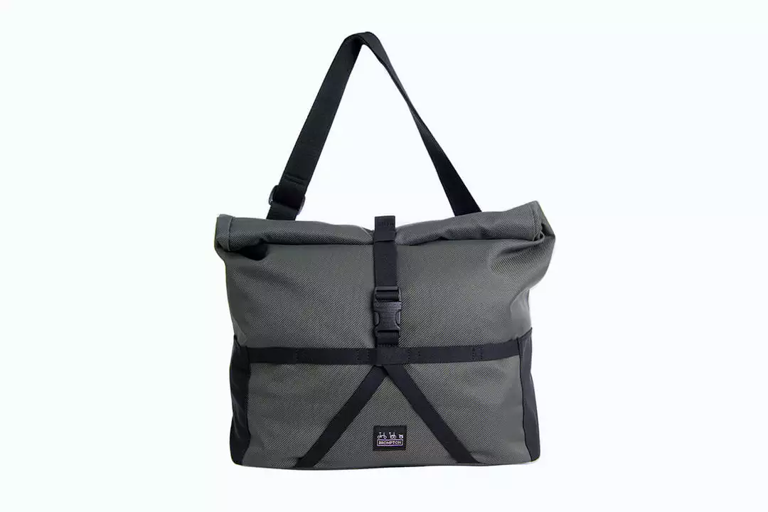 Made from a tough, highly water resistant fabric. Along with a padded laptop sleeve, the bag features a roll top opening and external load carry strap (making for easy access to helmets or jackets).