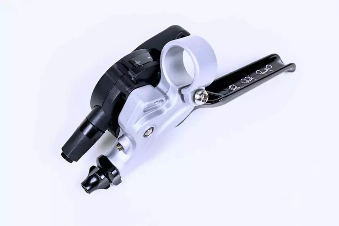 The all new 2017 gear shifter for the derailleur (left-hand-side), with integrated brake lever.
