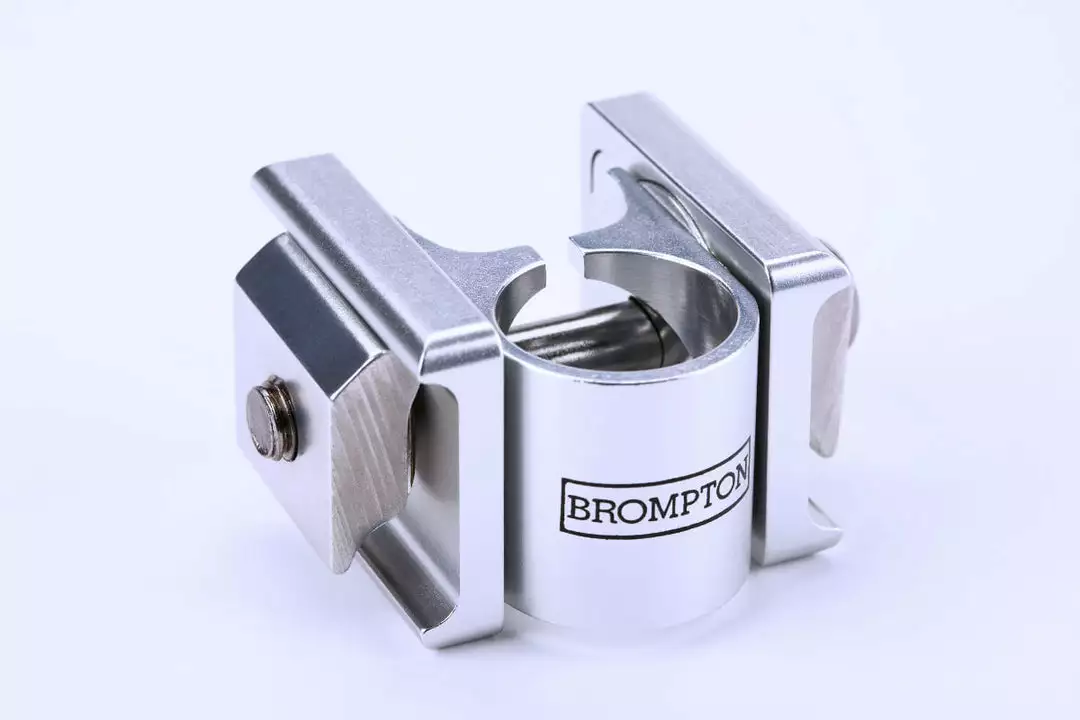 The ingenious and lightweight Brompton Pentaclip allows stepless adjustment of the saddle angle on rail saddles. Fits to any Brompton ever made and enables you to fit any saddle with 7mm rails to your Brompton.
