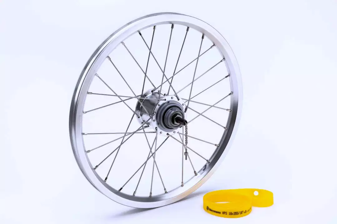 Genuine replacement rear wheel for 3 speed Bromptons. All fittings are included.