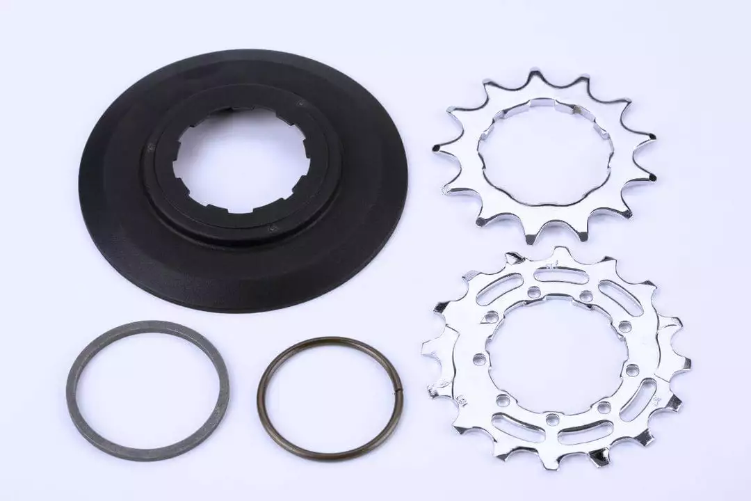 Genuine Brompton sprocket set including chain guide disc for BWR 6-speed hubs (9-spline).