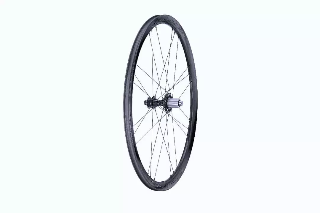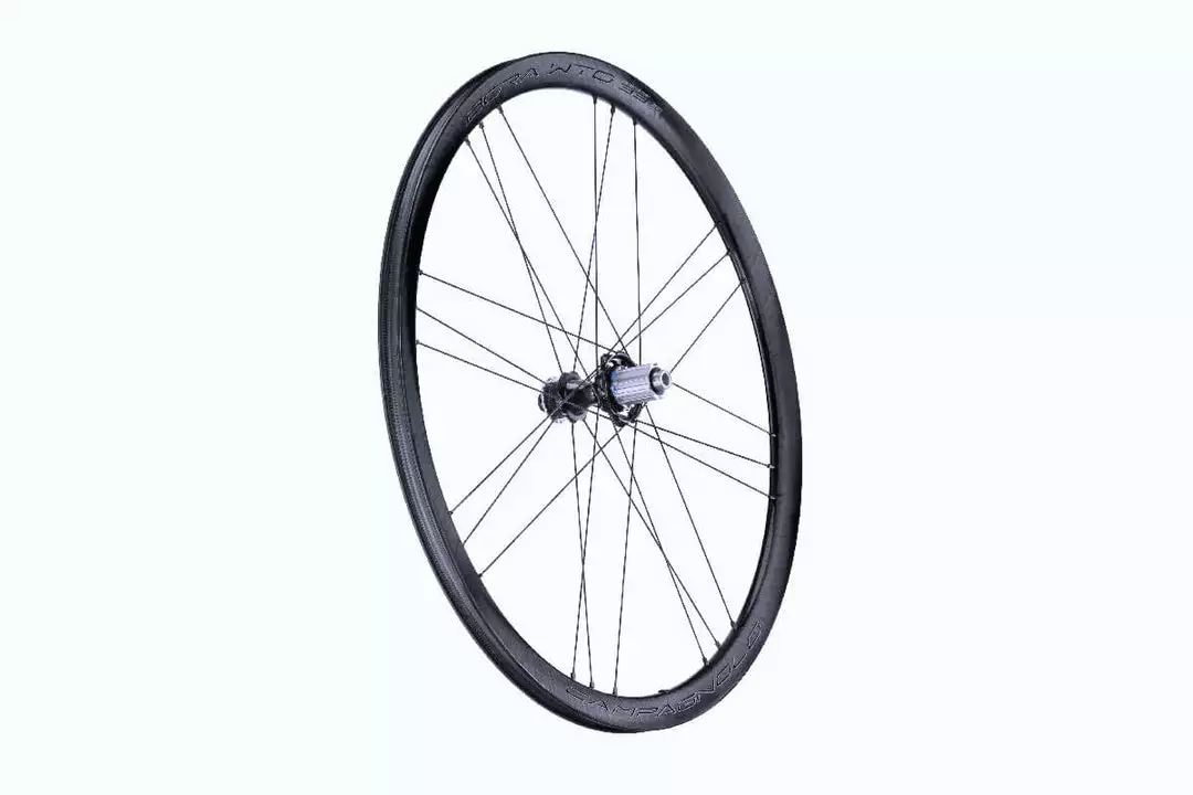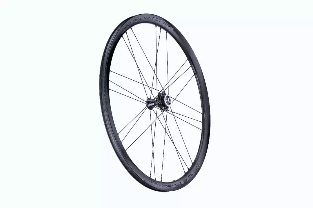 A truly multi-purpose wheel, the Campagnolo Bora WTO 33 was developed by Campagnolo using wind tunnel testing to create a wheel that is optimised to slice through the air. Ideal for rolling and flat roads, the wheel is lightweight too to enable you to head uphill without a concern. The Bora WTO 33 wheels have the same aluminium hubs and USB ceramic bearings as the rest of the WTO range. The streamlined hubs are slim in the centre and curve upwards to taller flanges; a shape said to improve aerodynamic performance. Campagnolo’s distinctive G3 spoke pattern sees the spokes laced in groups of three on the rear wheel.