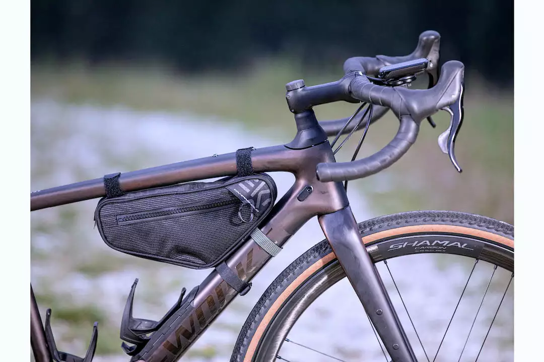 Ultra-light frame bag for gravel, racing and road bikes. Also stable at speed and on uneven terrain.