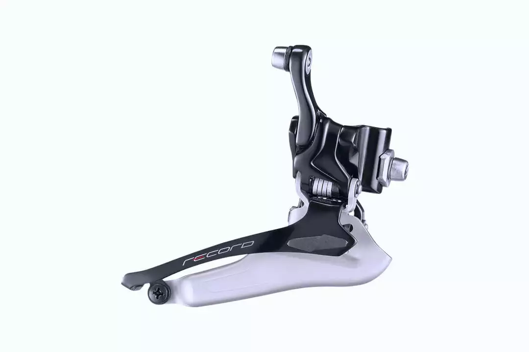 The Campy Tech Lab designers focused on functionality, performance and compatibility when redesigning the new front derailleur. The new Record mechanical 12×2 Speed derailleur reveals various technical innovations; starting with the leverage system, which is designed to speed up shifting. Less effort is required for shifting thanks to the split front link rod, which avoids contact with the travel limit screw, and the shape of the inner cage plate, designed to match the new 12 speed chain’s characteristics.