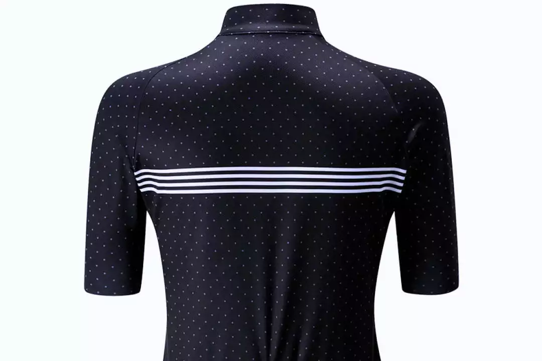 The striking Madeleine Polka Stripe earns its spots with the perfect mix of stylish and technical. Featuring moisture wicking fabric to keep you coolon hot days with a full length zip for extra climate control, the Madeleine performs as well as it looks.