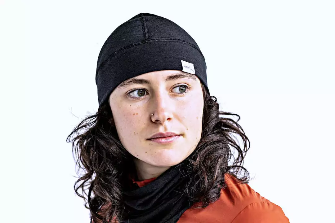 Merino wool hat, soft on the skin and designed to be worn under a helmet in cold weather to provide additional warmth and wind protection when riding.