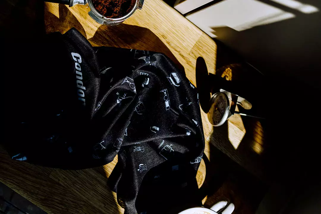 Our latest neck warmer with monochrome print features a variety of different coffee brewing contraptions from moka pots to cafetieres. The Neck Warmer pair perfectly with our Condor Coffee Pot cotton cap and rider case.