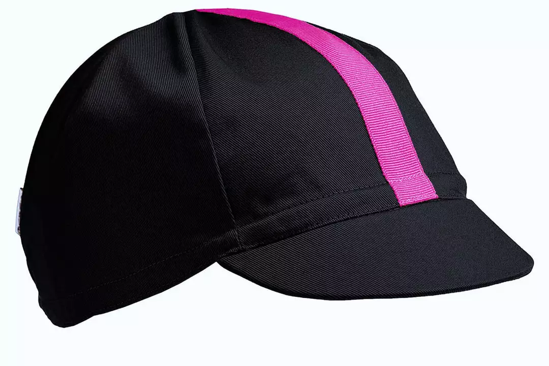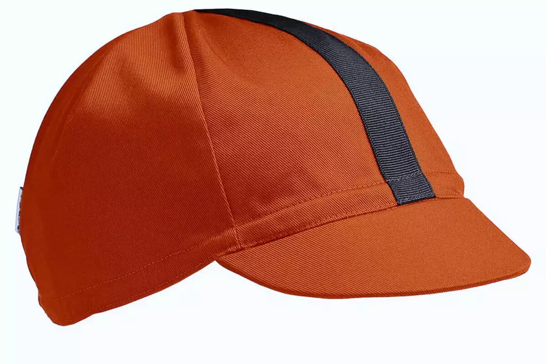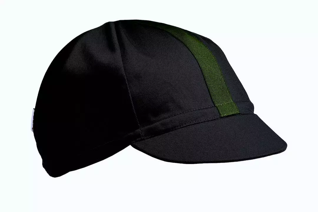 A traditional 4-panel cap made with a organic 7 oz cotton twill. Made in America, each cap features a coloured ribbon embroidered from front to back.