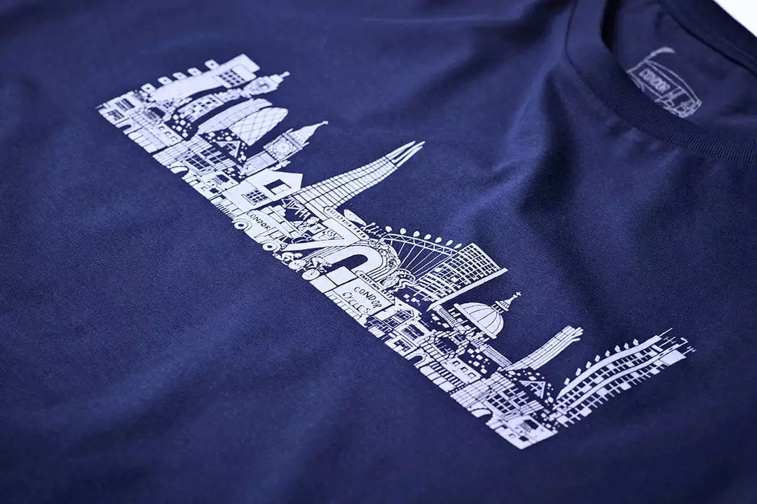 High-quality jersey cotton t-shirt with illustration of London, the home of Condor Cycles. The illustration features buildings from the past and present from Gray’s Inn Road to the icons of the capital.
