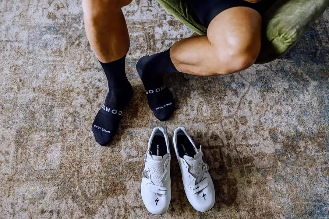 The socks feature a supportive band arround the mid foot to provide arch support on longer and tougher days of riding. We’ve added a double layer band at the top of the sock to hold them securely against your leg without pinching.