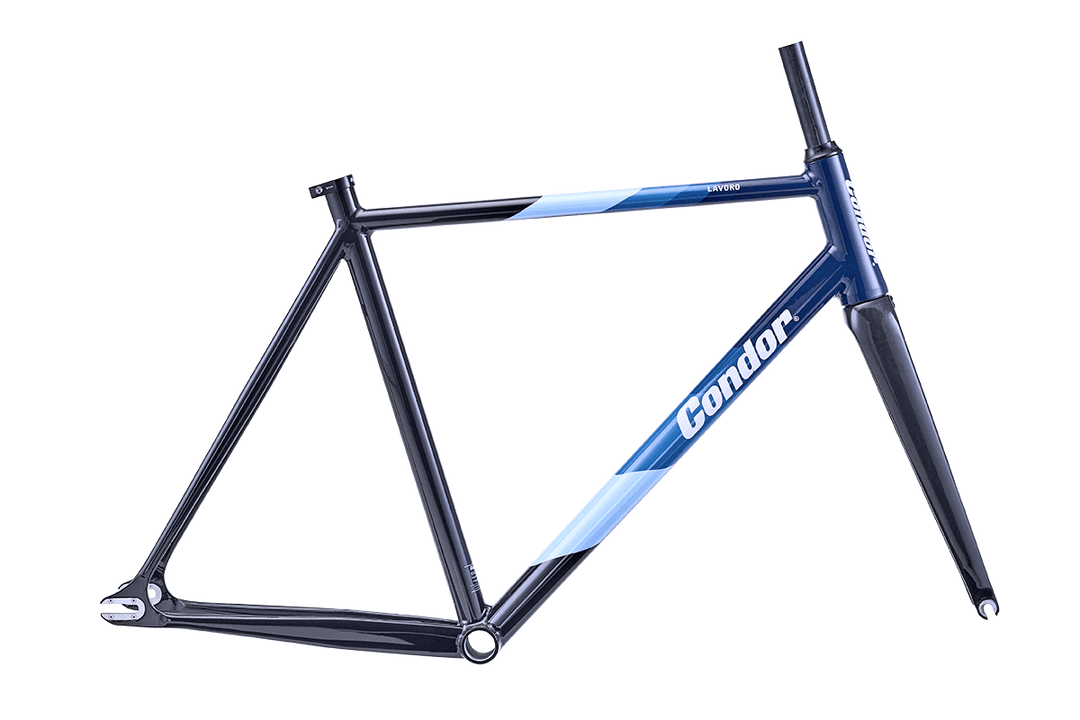 The Lavoro is a well-rounded performance track frame. Custom-butted, superlight aluminium tubing is aggressively shaped for performance on the boards. Welded by hand to obtain maximum structural integrity, the Lavoro is designed to withstand the demands of track racing. Straight bladed tapered carbon forks provide stiffness for pin sharp handling. The Lavoro is an ideal starter track frame that is just as suitable for our pro riders. A proven competition ready machine. Condor Cycles is the official supplier to the London Velodrome and Lee Valley Velopark.