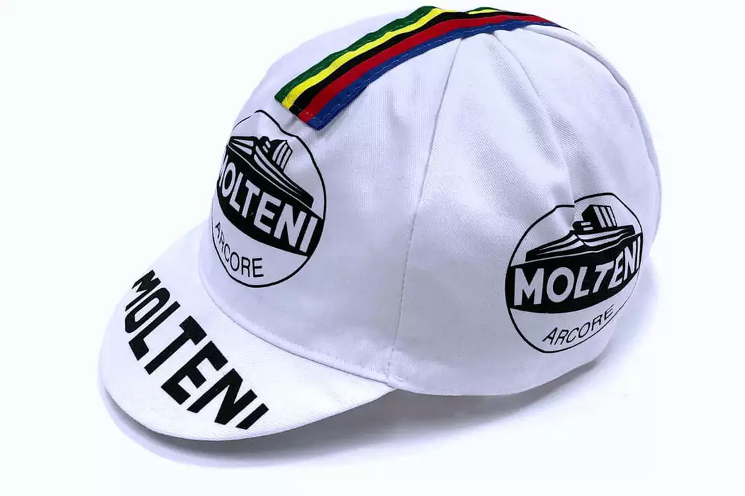 Retro cotton cap featuring the logos and design of legendary cycling teams of years gone by. Our retro cycling caps are made in Italy and keep the sun or rain out of your eyes. An essential for every cycling fan.