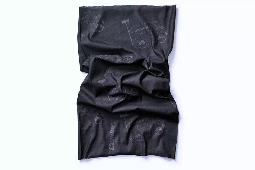The Black/Grey Neck Warmer features our Monty’s van design.