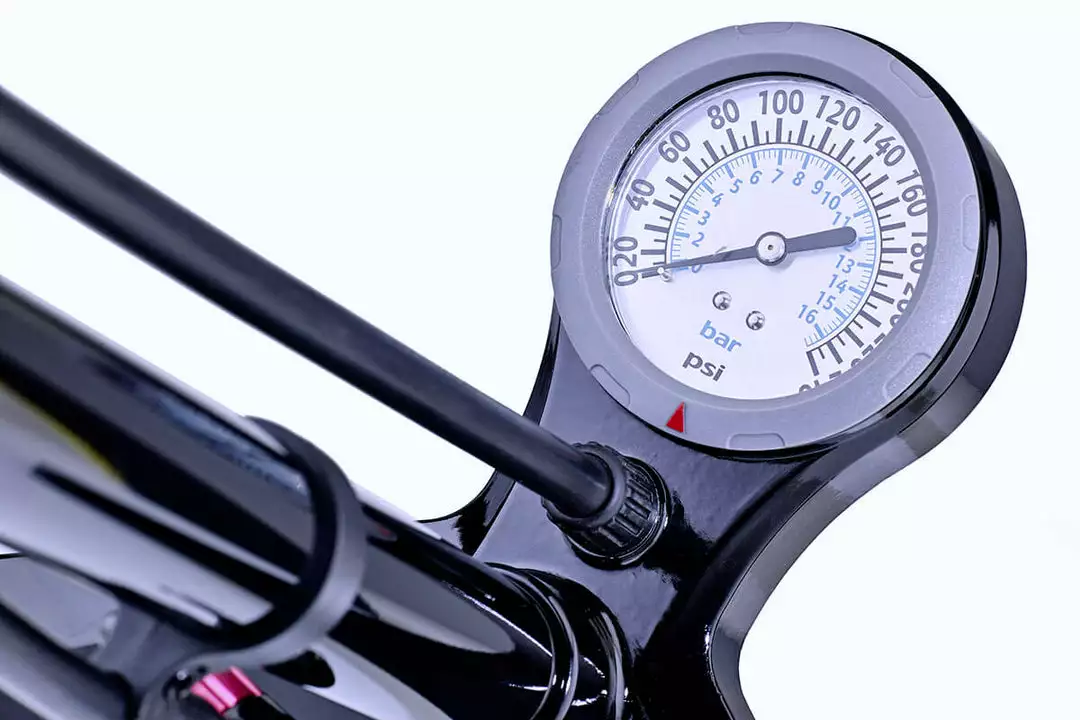 The pump head features red anodised detailing with locking lever to hold it in place on the valve. There is an adjustment button on the head to fine tune the tyre pressure.