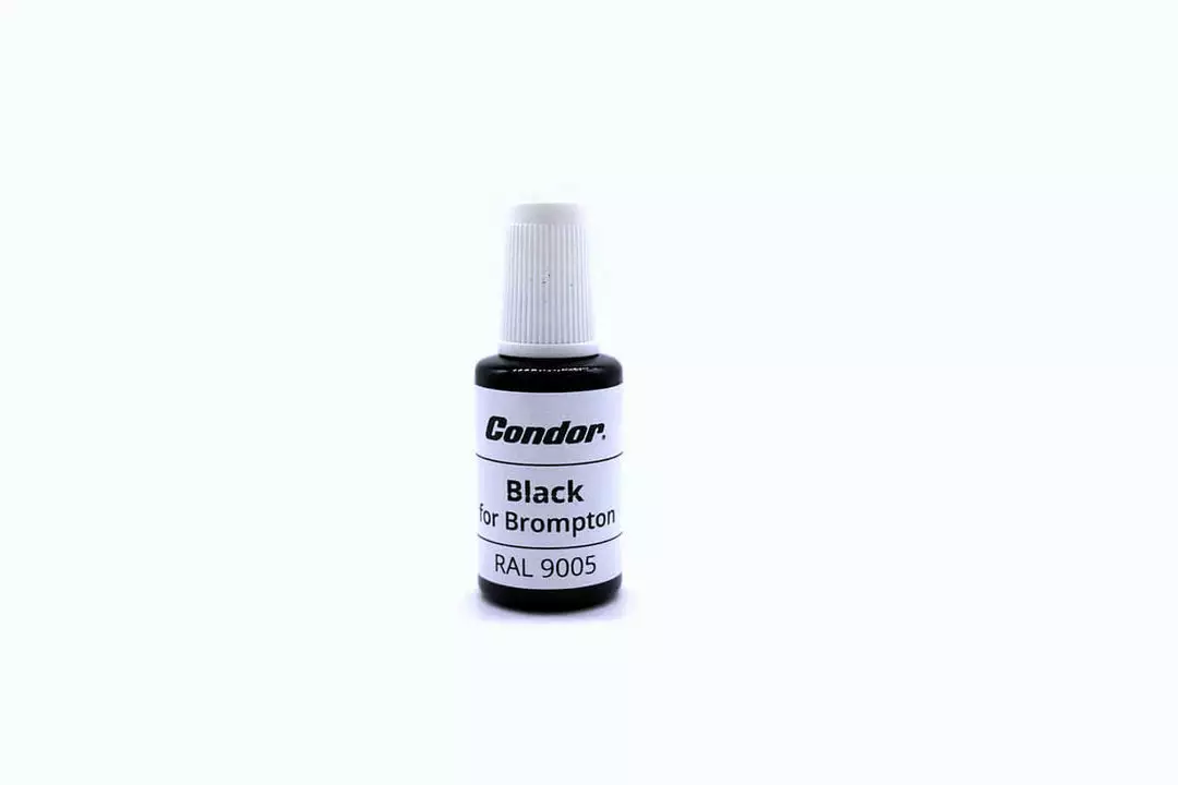 Condor Touch Up Paint for Brompton has been specially formulated for Brompton colours. Featuring an integrated brush, it is easy to repair chipped or scuffed paint. Our touch up paint can be applied without a primer and dries in 2 hours.