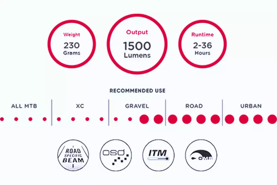 Super Bright output with a road specific beam to illuminate the darkest of rural roads and large battery for tricky commutes or longer tours in the saddle.