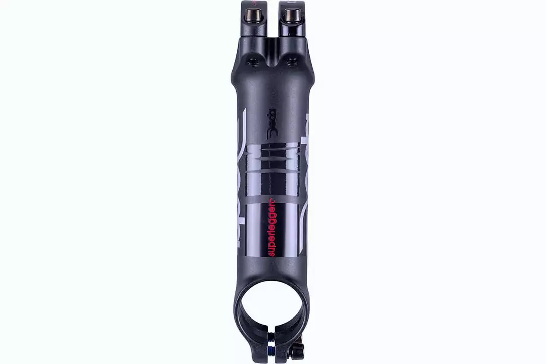 The lightest production stem. Alloy 7050 3D forged aluminium stem with titanium screws, available in black and black on black. Weight below 100 grams.