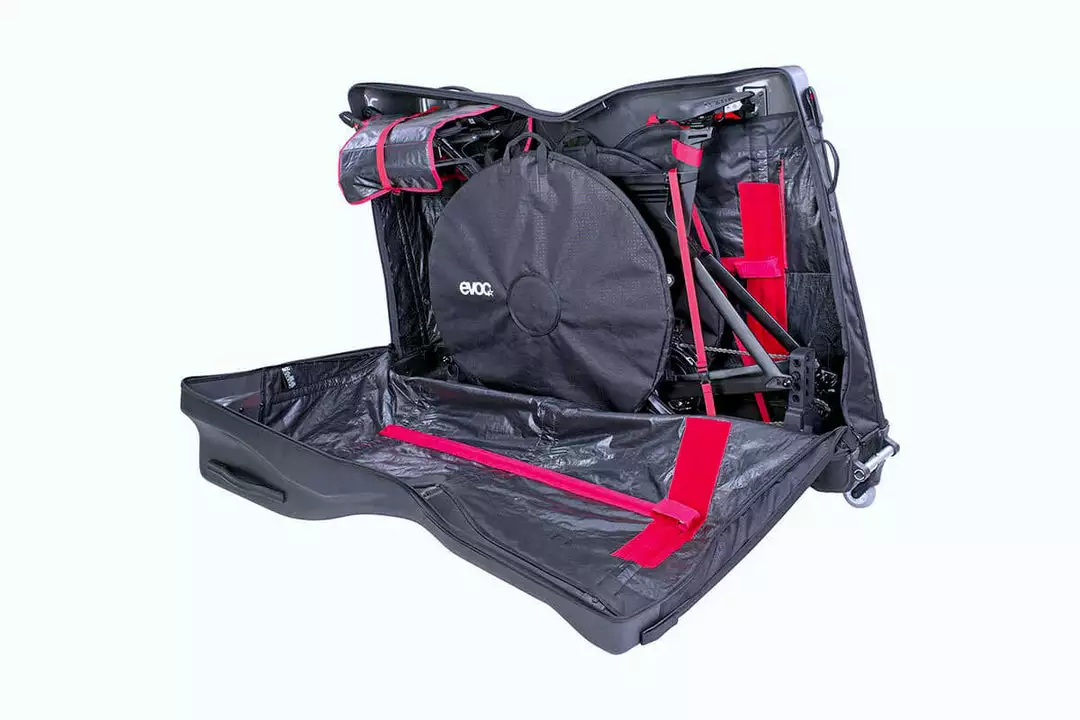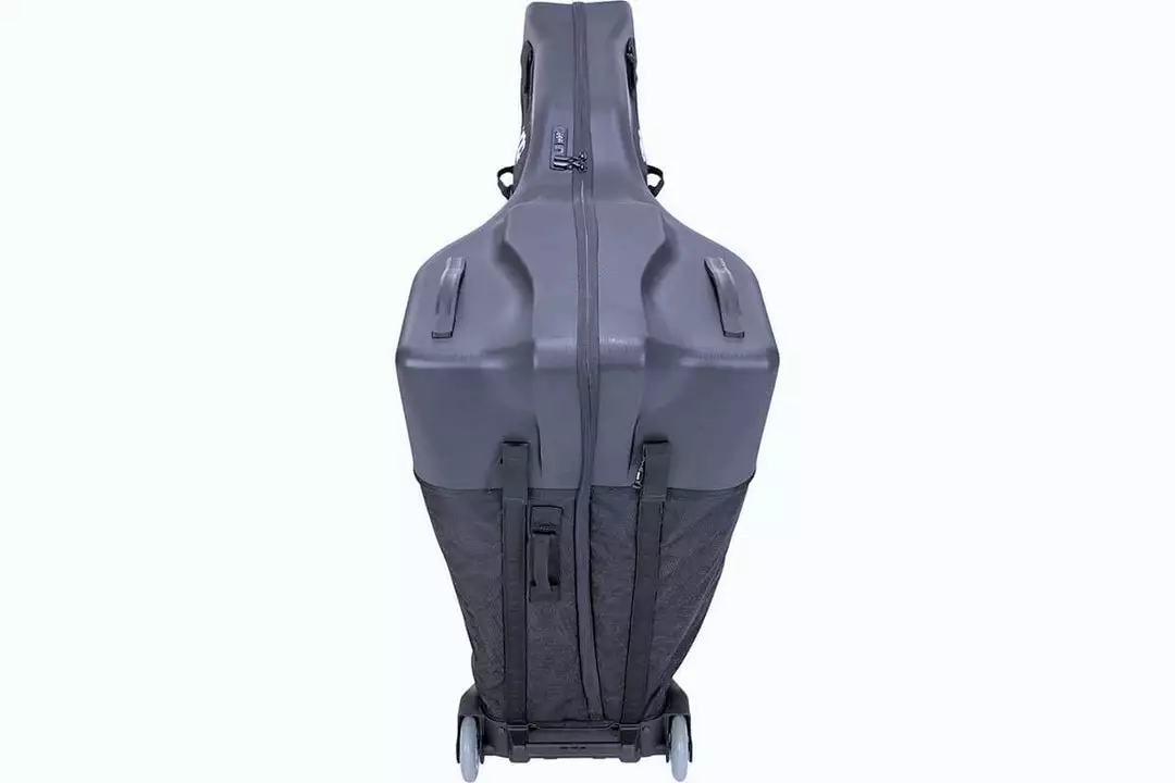 Revolutionary hybrid road and triathlon bike travel bag for very safe and convenient bike transportation.