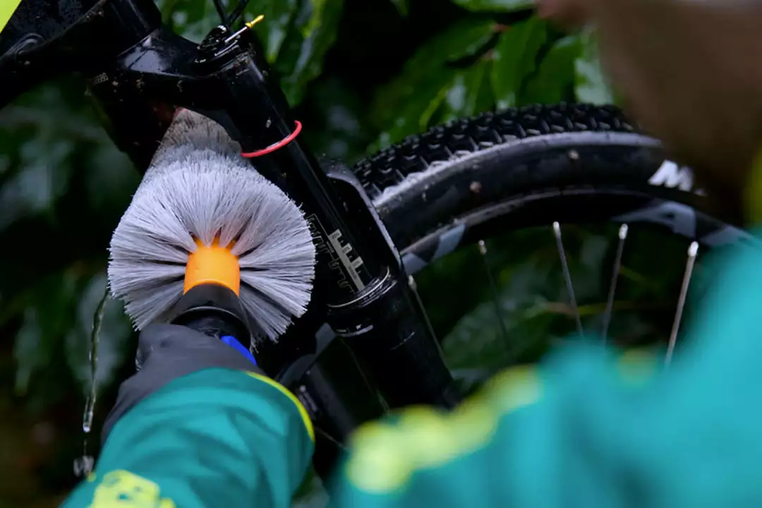 Fast and effective on wheels, frames and forks. For parts where other water fed brushes can’t reach.