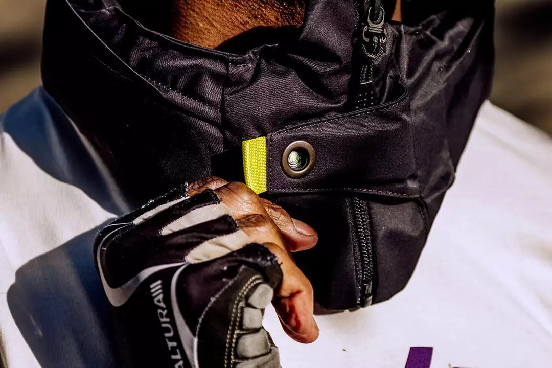 Sensors inside the collar read the cyclist’s movement pattern 200 times per second. In the event of an accident, the airbag inflates in 0.1 second.