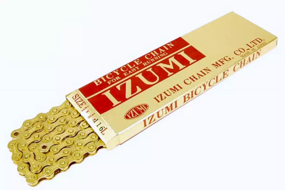 The Izumi Gold Chain is made in Japan and used by track and Keirin racers. Izumi chains stand for toughness and quality.