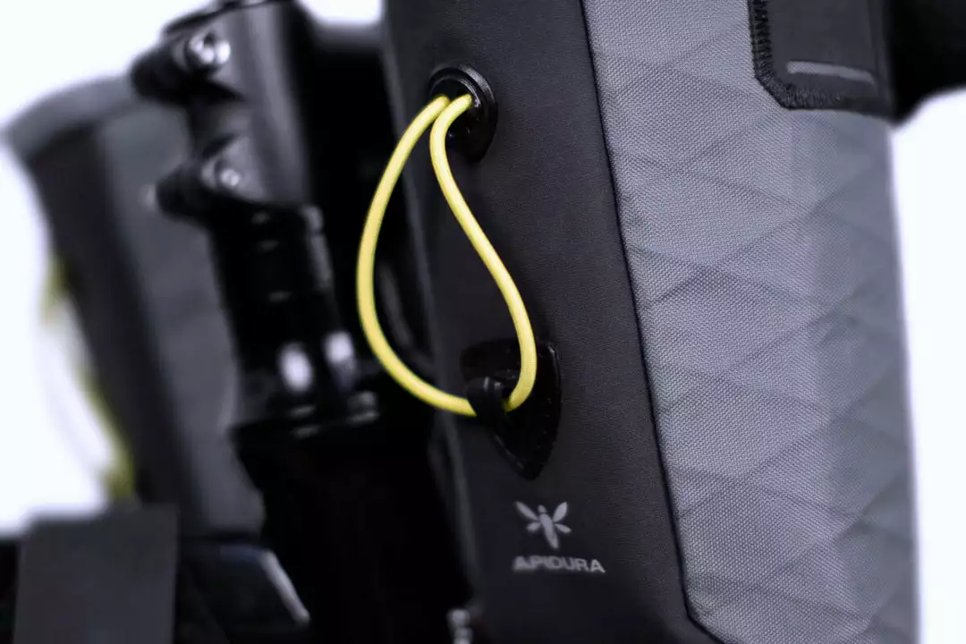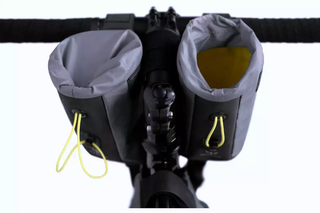 Designed to add easy-access storage space for frequently used items (water bottle, tools, arm warmers, snacks and so on). Food Pouches are an essential companion to any ultralight bikepacking system and are also great for every day riding and commuting. Run on either side of the stem; or run two in parallel. Constructed from high quality materials and optimized for durability and weight. Only 55 grams!