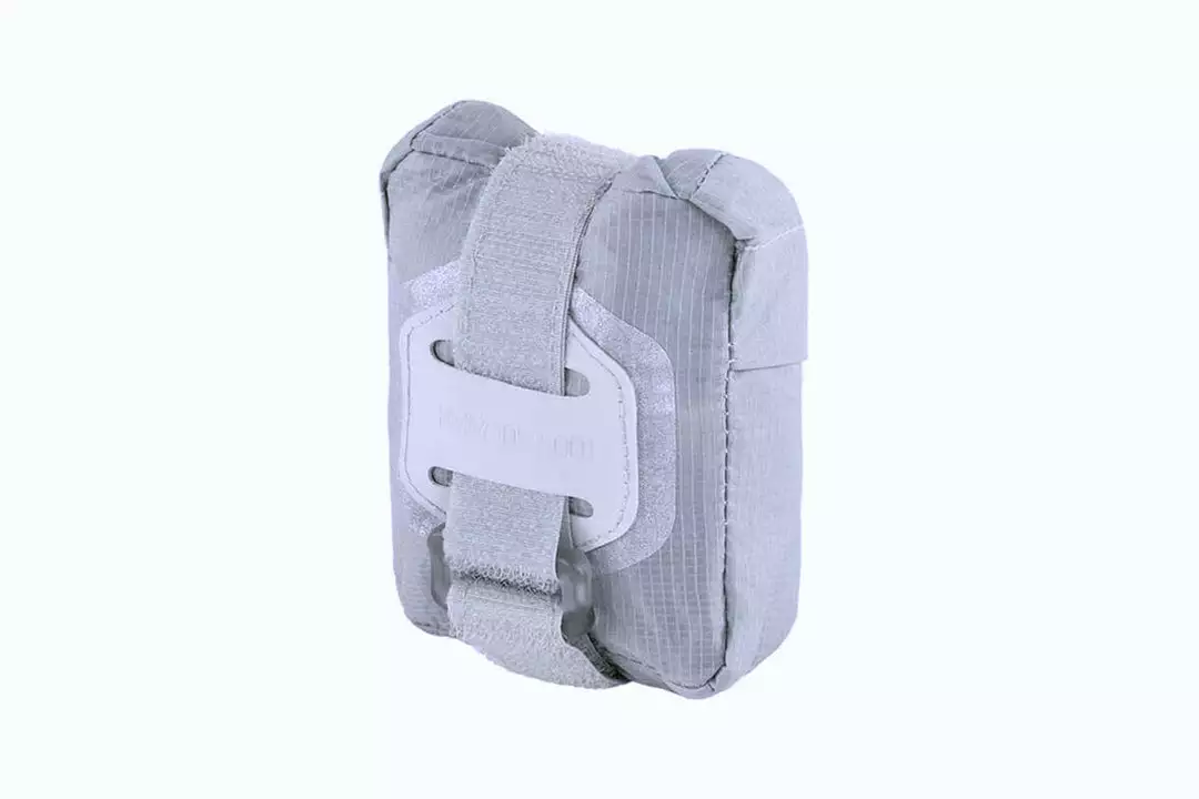 The waterproof musette bag is constructed from ultralight materials and features a reversible stability strap for riding comfort. The integrated on-bike storage pocket attaches to the bike frame with an included velcro strap to keep the musette out of the way when not in use.