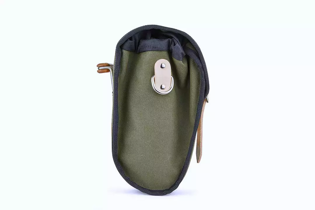 Compact saddlebag with classical styling and perfect for any type of bike saddle or folding bike. The saddlebag fixes to the saddle using the Frost+Sekers quick lock mount.