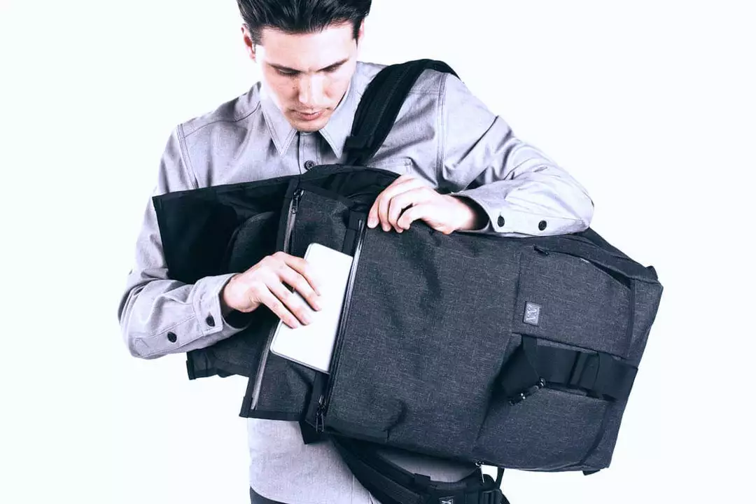 The Vandal backpack features a water-resistant main compartment which can be used in either “roll-top” mode, or in the traditional “flap-down” configuration.