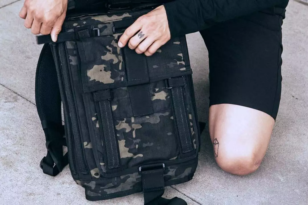 The two front mounted Arkiv rails allow for the additional attachment of the Tool or Cell accessories if desired. A U-lock slot in the back can double as a handle when the Folio is used as a stand-alone bag.