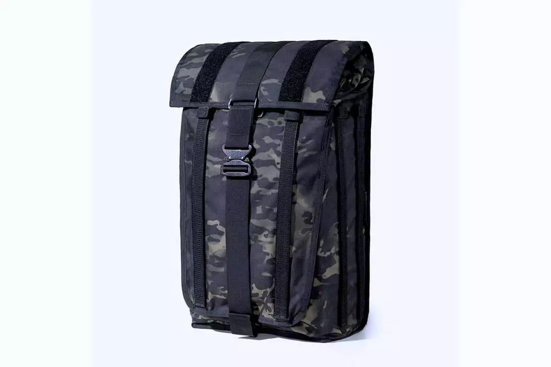 The main body of the pack is made from either 500D black camo Multicam® Cordura® or Mission Workshop’s advanced HT500 textile. HT500 incorporates high-tenacity yarn resulting in a refined lightweight fabric that is abrasion and tear-resistant. HT500 also has a special water-resistant coating that gives it extra structure and allows it to patina and naturally distress with age similar to leather or waxed cotton. Unlike many nylon fabrics, HT500 fabric looks better the more you use it.