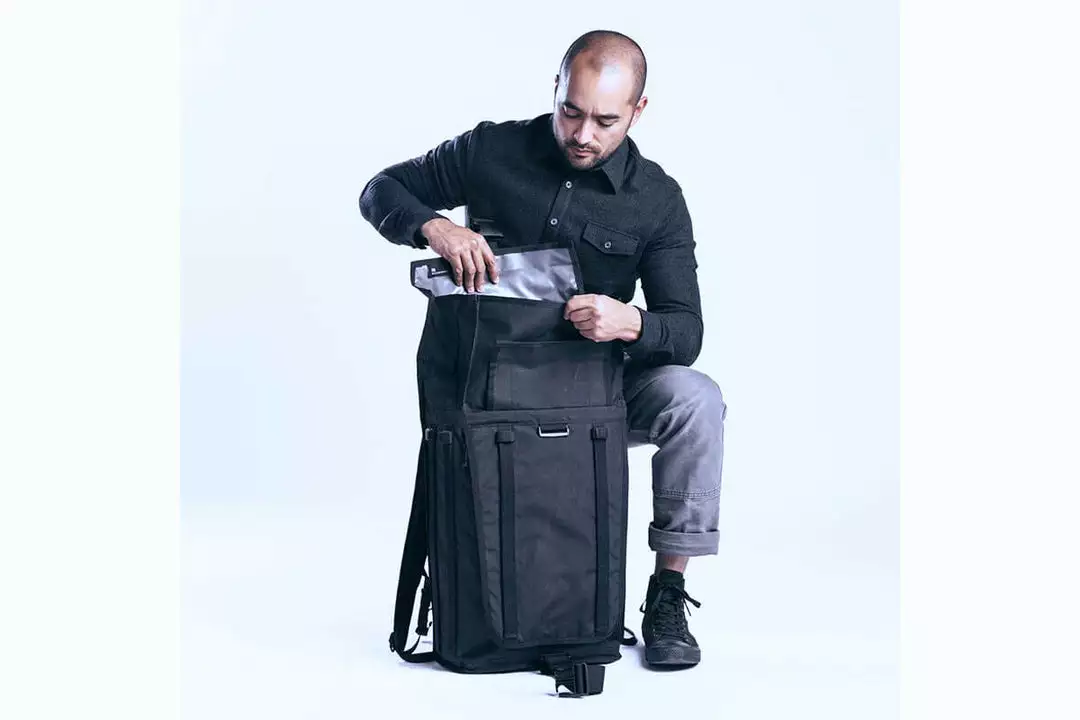 The Radian is a 42-litre pack designed to seamlessly navigate almost any environment with all the gear required for longer journeys. The elegance of The Radian lies in its configuration. The entire front panel zips open so that it can be packed flat like a suitcase, while at the same time maintaining the classic Mission Workshop roll-top closure for quick access to essential gear. Roll top can be used with or without velcro.