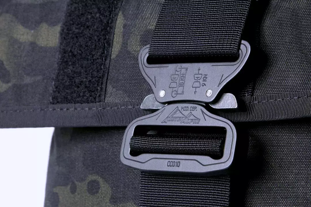This edition includes a removable AustriAlpin COBRA buckle closure, the bag is made with a MultiCam Black Cordura 500d.