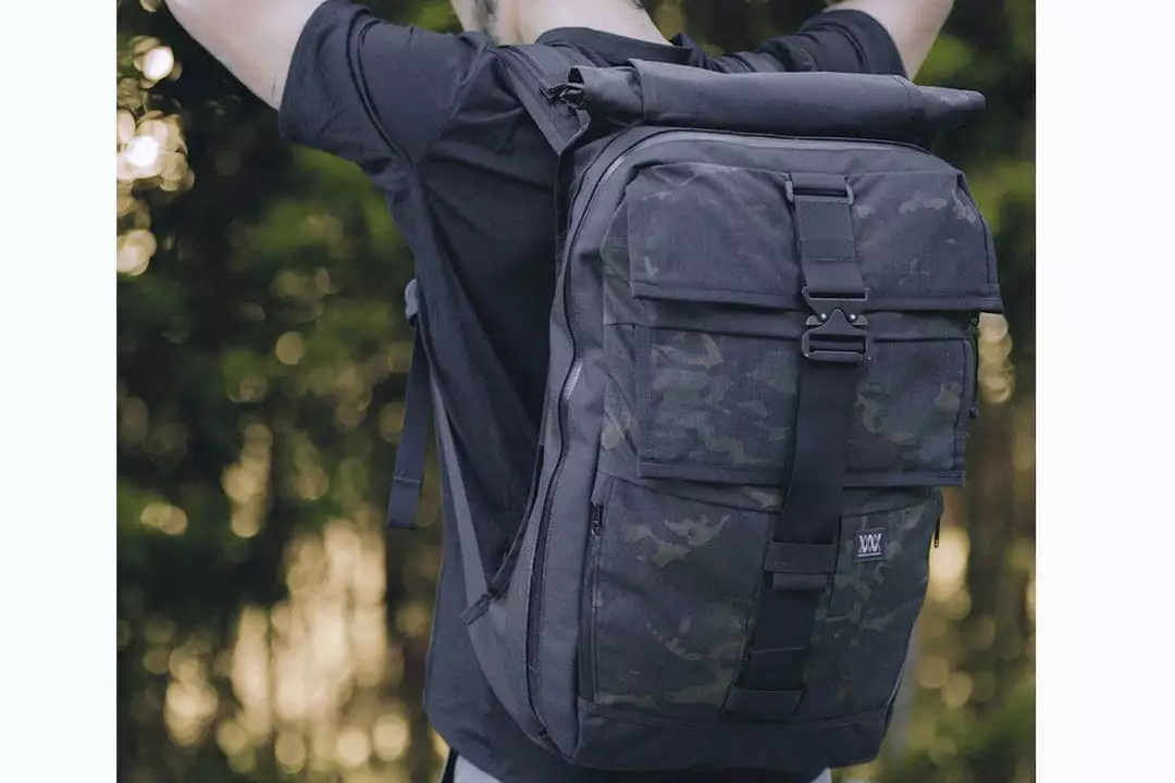 Mission Workshops cargo packs feature a water-resistant main compartment which can be used in either “roll-top” mode, or in the traditional “flap-down” configuration. These expandable backpacks have the ability to quickly double in size, allowing extra cargo capacity when needed.