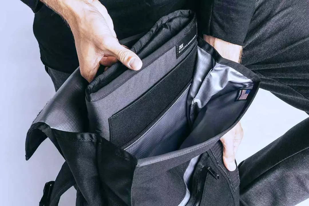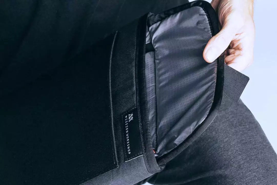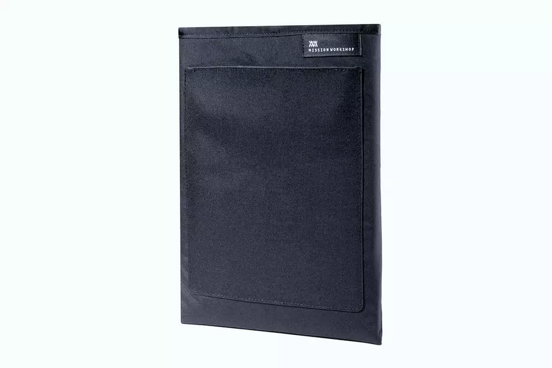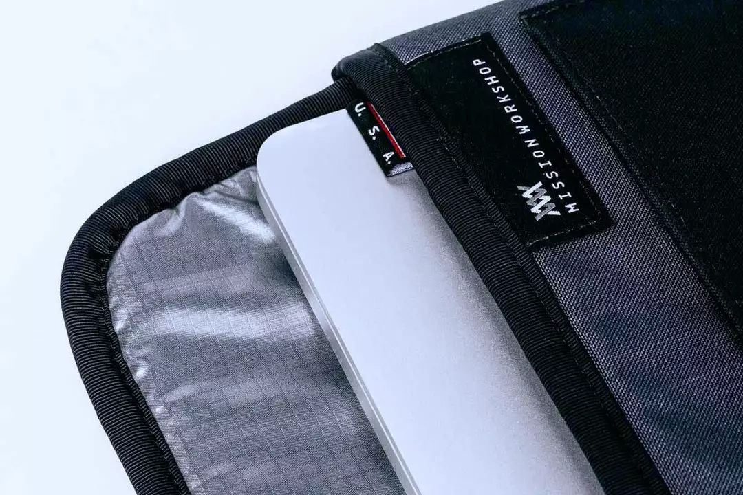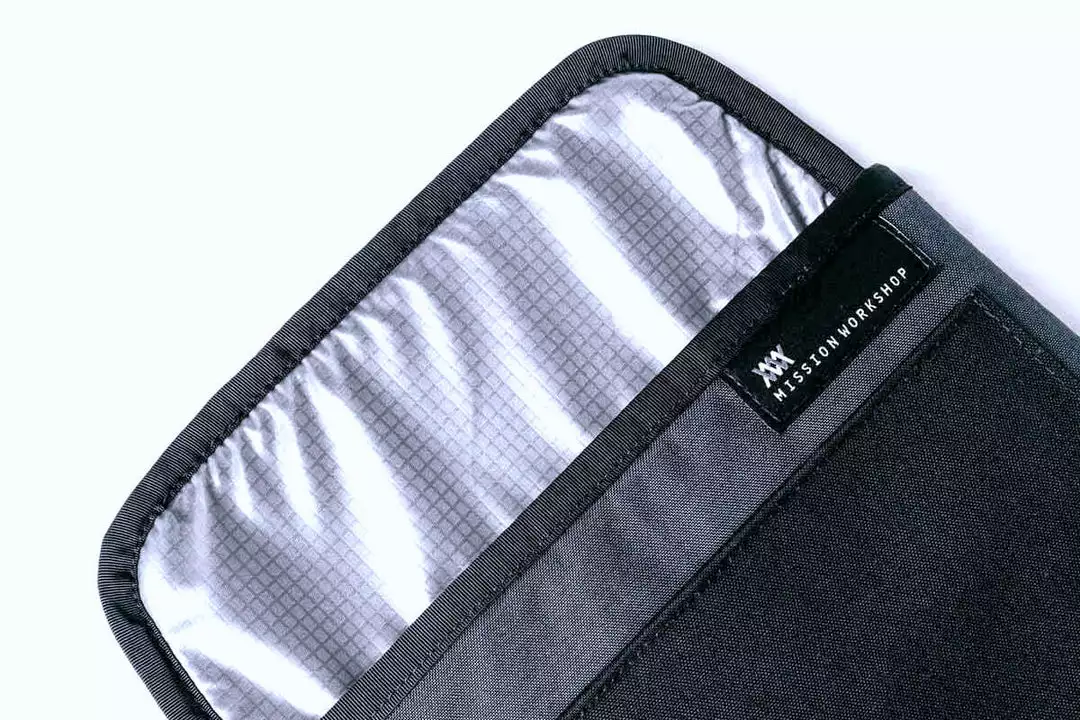 The Mission Workshop Spec is a fully padded laptop sleeve designed to be paired with any of Mission Workshop’s rucksacks or cargo packs: the Fraction (main compartment only), Sanction, Fitzroy, Rambler, Vandal, or R2/R6/R8.