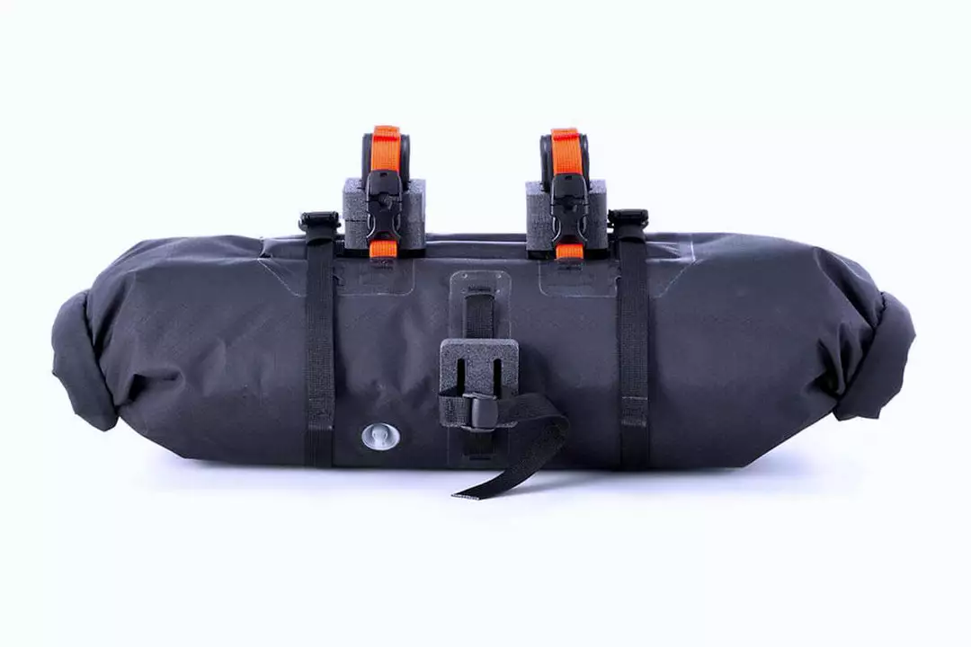 Compression belts on the outside enable the stowing and attachment of additional equipment. Moreover, the Handlebar-Pack comes with four hooks to enable the attachment of an ORTLIEB Accessory-Pack for additional stowage space. Consisting of spacers and two strong Velcro straps, the mounting system ensures secure attachment to any handlebar type, including carbon handlebars. The pack’s stiffened interior and head-tube attachment offer additional stability – in any terrain.