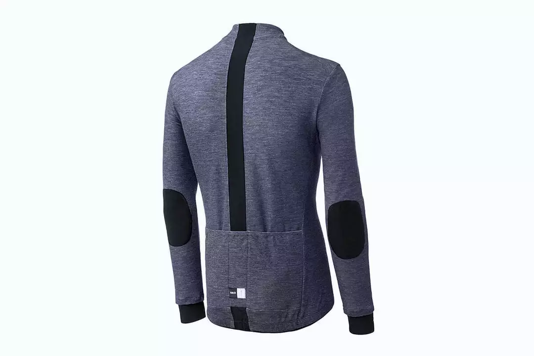 The Kaido Longsleeve Jersey is made from a merino/ polyester mix to be fast drying and comfortable, for training or everyday cycling year round. The rear features a vertical stripe of horizontal one-way stretch material to provide a snug, athletic, fit to maintain the shape of the jersey over time. Finished with a full zip with chin protection and featuring two large rear pockets, and a vertical pump pocket for emergencies.Suited to road riding, touring, commuting and everything in between.Marl fabric and contrast elbow patches give the Kaido a throwback look.Plenty of rear pocket storage and a chest zippered pocket for valuables.