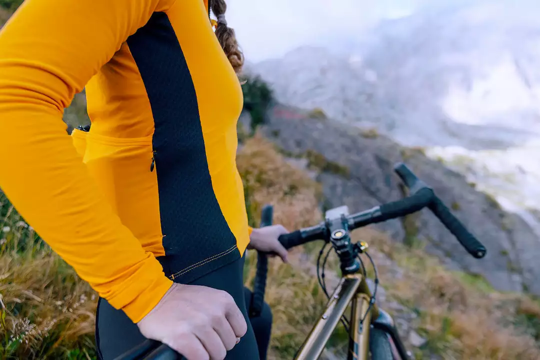 Our performance women’s long sleeve road cycling jersey made for training and racing from Bluesign® approved sustainable fabrics.