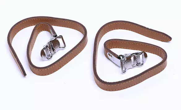 Leather toe straps hold your foot in place on a flat platform pedal. Reinforced for added strength and longevity. Classy design has timeless retro feel.