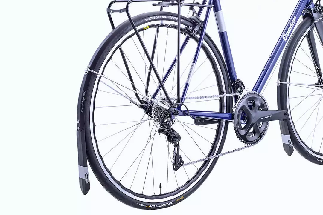 Complete with special hardware to fit around caliper brakes, under forks, and include add-on mounts for bikes that lack eyelets.