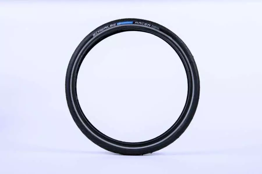The all-new standard Brompton tyre, the Marathon Racer by Schwalbe. Featuring a double layer of Nylon fabric under the tread and offering excellent puncture protection for a tire that should be fast and lightweight.